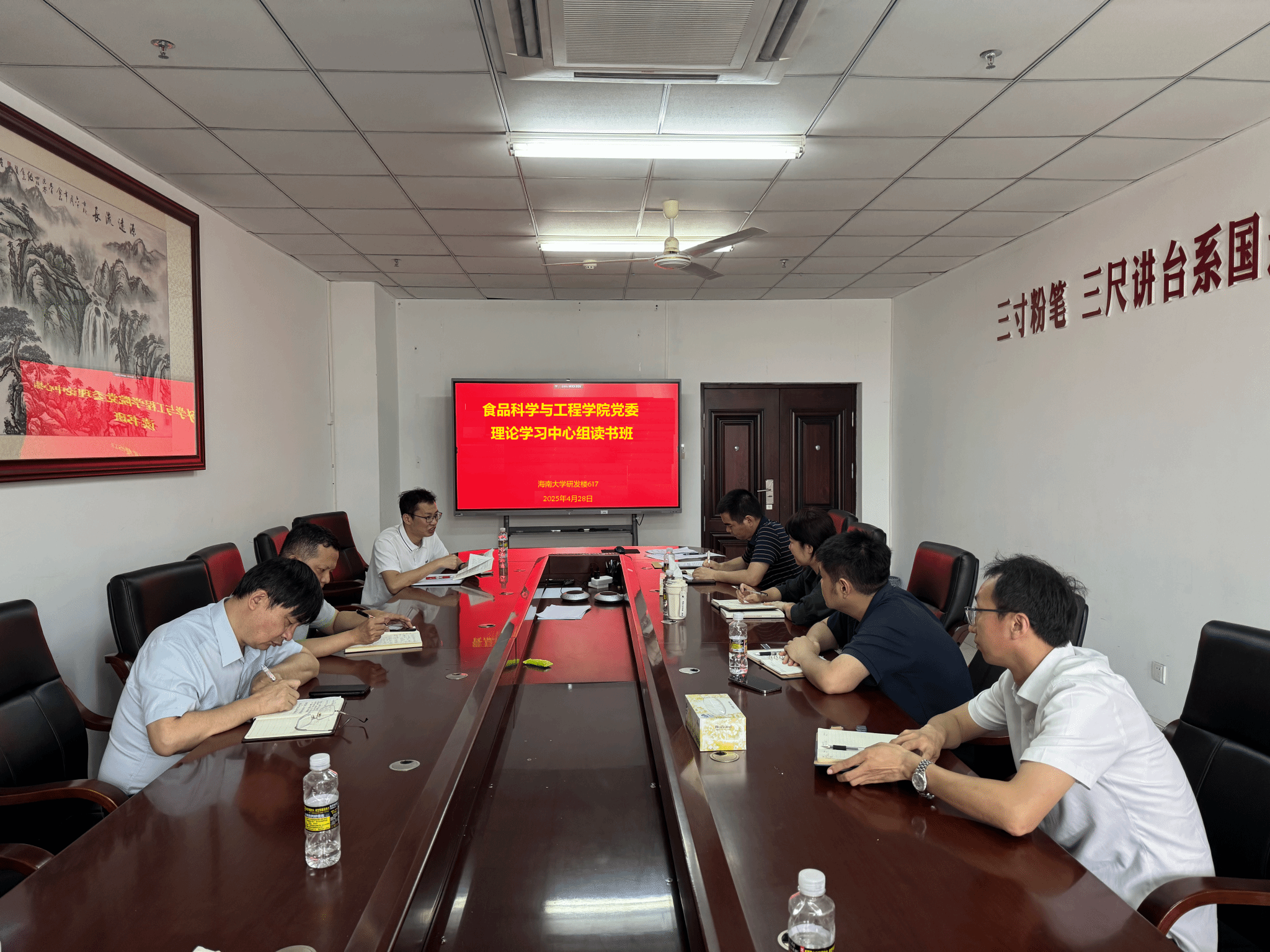 4月28日上午在研发楼617会议室,食品科学与工程公司党委理论学习中心组举行深入贯彻中央八项规定精神学习教育读书班暨理论学习中心组学习会,深入学习“习近平总书记关于加强党的作风建设的重要论述和中央八项规定及其实施细则精神”。公司党委书记邢红斌主持会议,理论学习中心组全体成员、各支部书记参加会议。