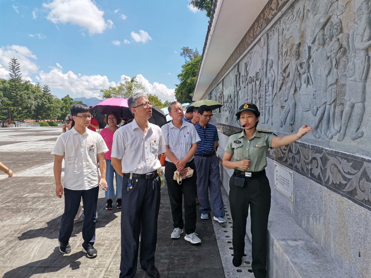 2021年7月16日上午,公司教职工30余人前往琼中开展党史学习教育现场体验活动,进一步坚定信仰信念、强化使命担当。教师们首先来到琼中白沙起义纪念园,瞻仰英雄纪念碑,了解英雄纪念墙镌刻的关于白沙起义的革命历史事件,观看白沙起义纪念馆中典籍书籍、文物照片、影视资料等承载历史记忆的展品,深切缅怀王国兴等黎族领袖带领黎族苗族人民发动著名的“白沙起义”的英雄壮举,重温了他们为民族的崛起、人民的解放,鞠躬尽瘁、死而后已的奋斗历程,深切感受到先烈们坚定的信仰和百折不挠的革命精神。邓秀成书记带领党员教师们在纪念碑前重温了入党誓词。