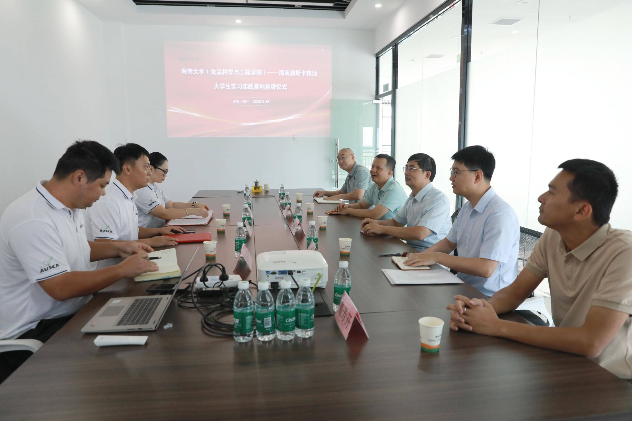与海南澳斯卡国际粮油有限公司商讨共建公司老员工实习实践基地