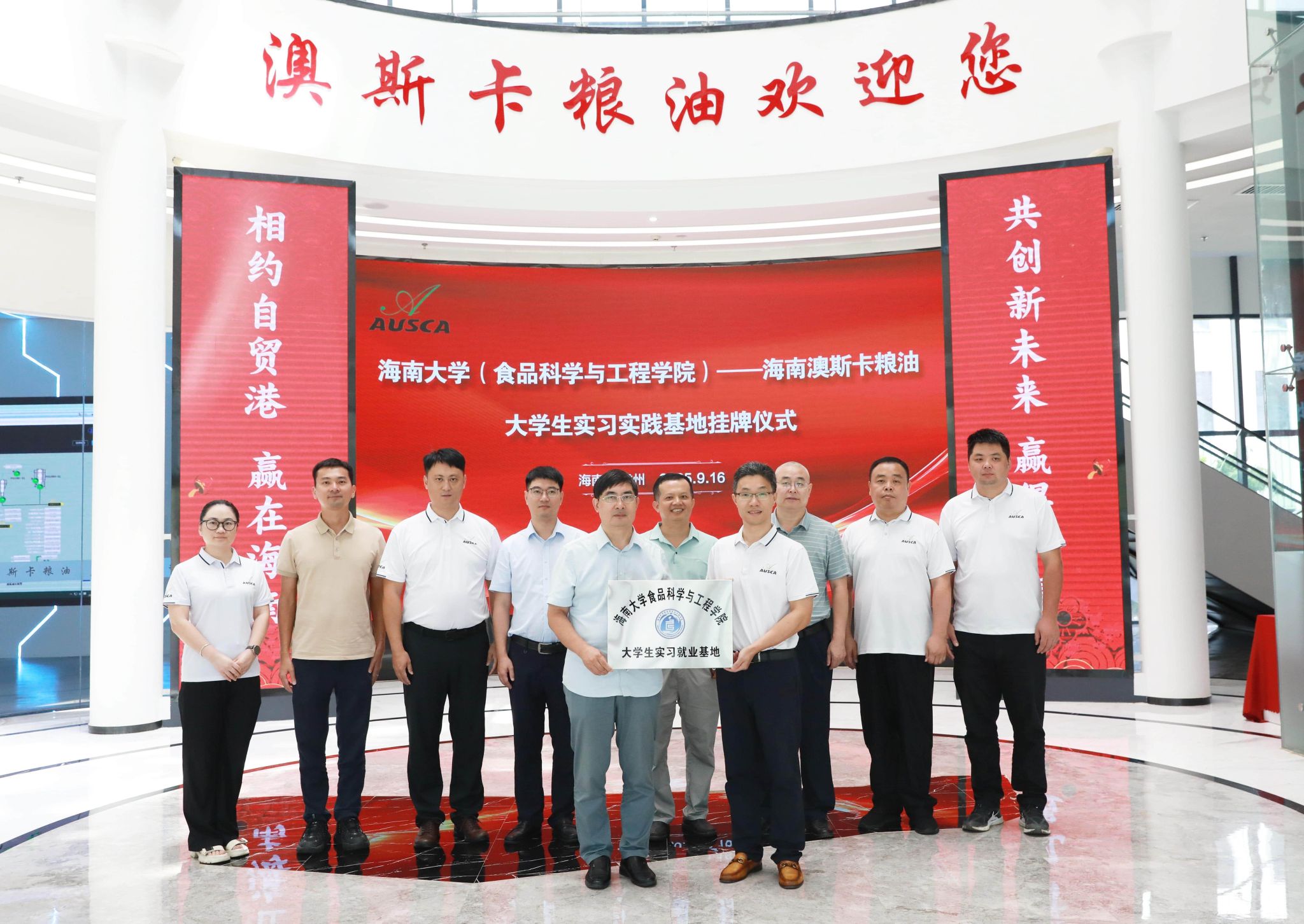 与海南澳斯卡国际粮油有限公司进行公司老员工实习基地授牌