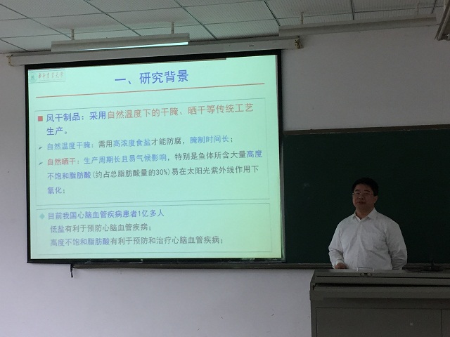 //www.hainanu.edu.cn 在“传统风干鱼制品生产工艺的革新与现代化”报告中,熊教授介绍了热历史对淡水鱼风味变化的影响、腌制过程中盐分在鱼体内的扩散动力学、腌制方法和干燥方法对风腊鱼品质(风味、理化成分、安全指标)的影响,阐述了淡水鱼加热-冷却-再热或冷藏-加热中风味变化规律和机制。在“淡水鱼鱼糜凝胶形成机制与质构调控技术研究”报告中,报告了淡水鱼肉蛋白低温贮藏与加工过程中理化特性的变化,淡水鱼肌原纤维蛋白冷冻变性、热诱导胶凝机制及其影响因素,淡水鱼鱼糜脱腥技术。熊教授报告深入浅出,紧密结合实际生产,向同学们传达知识,增长了同学们的见识,加强了同学们对自身专业的兴趣和使命感。同学们聆听非常专注,认真做笔记,在学到丰富知识的同时,也对专业的社会价值和未来工作科研的责任有了更加深入的认识。//www.hainanu.edu.cn
