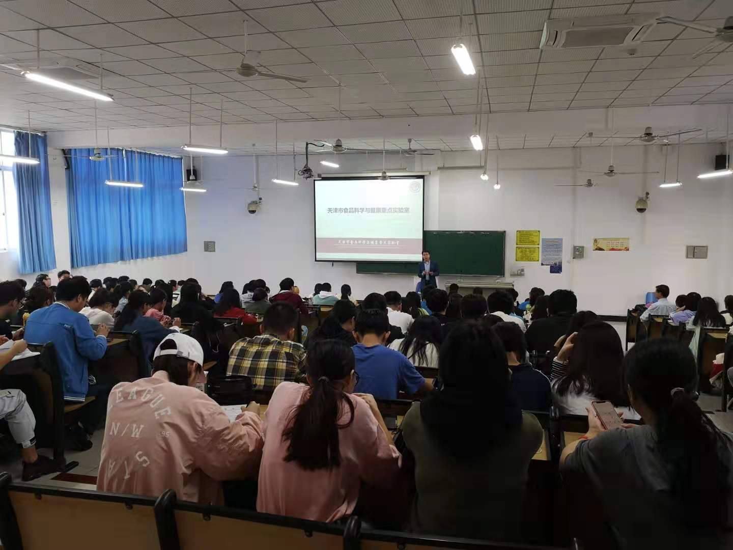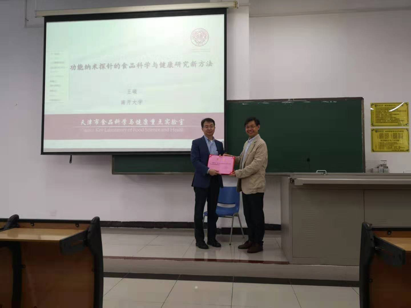 2019年1月6日,南开大学杰出青年获得者王硕教授应邀参加bw西汉姆联冬季小学期讲座,为2018级食品大类本科生讲授“基于功能纳米探针的食品科学与健康研究新方法和基于实时成像技术的食源性益生菌体内示踪研究”。bw西汉姆联经理李从发教授和副经理陈文学教授出席此次授课,李经理代表公司致辞,对王硕老师的到来表示热烈欢迎,并向王硕老师颁发“bw西汉姆联官网平台冬季小学期外聘专家”证书。