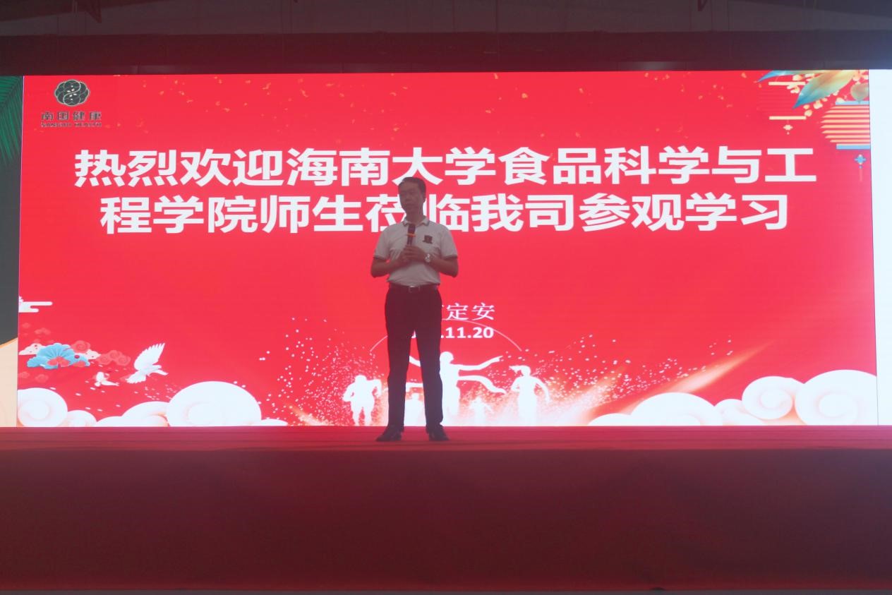 首先南国健康产业园副总经理陈伟斌及南国健康产业公司工作人员对bw西汉姆联全体师生的到访表示热烈欢迎。陈伟斌副总经理向同学们介绍了南国企业的文化、品牌发展和产品种类,让同学们对南国食品有了初步的认识。