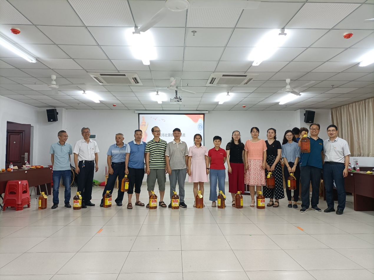 活动在全体教职工合唱“没有共产党就没有新中国”歌曲中拉开帷幕,党史知识问答和团队趣味活动交叉进行。党史知识问答活动中,教职工们积极思考,主动举手抢答,气氛热烈紧张而又愉快放松,“一大会址、中国共产党的最高理想和最终奋斗目标……”等党史知识更加深入人心;趣味活动中,教职工团结协作,斗志昂扬,奋力拼搏,展现了各自的风采,活动现场变成了欢乐的海洋,大家纷纷表示这些活动放松了身心,愉悦了心情,又提升了团队的合作能力。在活动中公司还举行了教职工荣休仪式。仪式上,康丽如、蔡锦红两位老师回顾了自己在公司工作的点点滴滴,表达了对工作的深深眷恋和对公司发展的祝福,现场的同事也纷纷送上了对两位老师的美好祝愿,邓秀成书记代表公司为他们送上了慰问品;在发奖环节,各个参加活动的教职工和团队都欣喜地收到了公司工会为大家准备的奖品,活动也在欢乐的气氛中落下了帷幕。