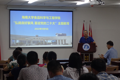 2022年9月9日下午,食品科学与工程公司党委邓秀成书记在研发楼610室主持召开“弘扬良好家风喜迎党的二十大”主题教育活动,公司领导和全体教职工参加会议。