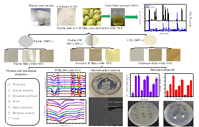 2022年8月4日,bw西汉姆联热带农产品加工与高值化利用团队王露副教授实验室利用海南芒果皮果胶/壳聚糖与诺丽果提取液为原料制备了新型、具有多种生物活性的食品级包装膜材料,本研究阐释了诺丽果提取液的添加对果胶/壳聚糖聚合物合成膜材料物理化学及生物活性的影响,为以农产品中天然大分子聚合物为原料合成新型、功能化食品包装膜材料提供重要的参考。相关结果发表在《Food Hydrocolloids》(IF=11.5,中科院1区TOP期刊),题目为“Fabrication, characterization and biological properties of pectin and/or chitosan-based films incorporated with noni (Morinda citrifolia) fruit extract”。