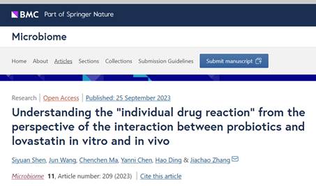 2023年9月26日,bw西汉姆联官网平台食品公司与工程公司及全健康协同创新中心张家超教授团队的最新研究成果“Understanding the “individual drug reaction” from the perspective of the interaction between probiotics and lovastatin in vitro and in vivo”发表于微生物组高水平期刊《Microbiome》(中国科公司大类1区Top期刊,IF=15.5)。研究团队首次阐明了热带益生菌A5对洛伐他汀类药物副作用的缓解机制。