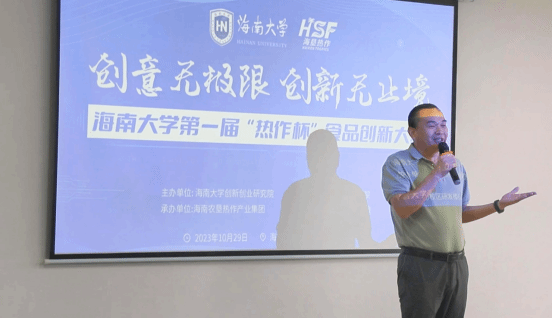海南农垦热作产业集团有限公司党委书记、董事长李豫首先致辞。他对出席活动的嘉宾、评委及参赛师生表示热烈欢迎,并希望通过多元化的校企合作、校际协同,为食品专业创新型人才培养搭建更加广阔的平台。